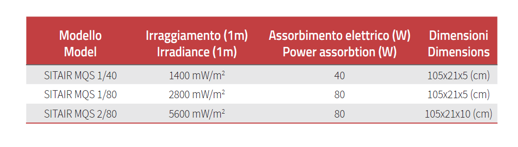 סדרת SITAIR MQSmini מאופיינת ביחידות קלות וקטנות בגודל. טכנולוגיה זו מורכבת מנורת מקל אור על-סגול שמוצבת בתוך חדרים אזרחיים ותעשייתיים.